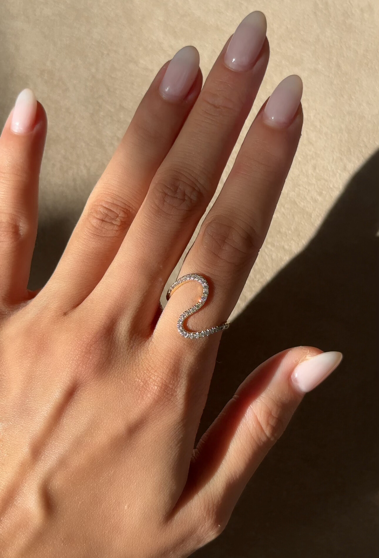 The Tina Ring is a graceful take on asymmetry, where a pear-cut diamond delicately anchors one end of a gently arched pavé band. With 29 round brilliant diamonds set into the sweeping curve, this design draws the eye with quiet confidence and elegant motion. Whether worn solo or stacked, the Tina Ring makes a subtle yet distinct statement.